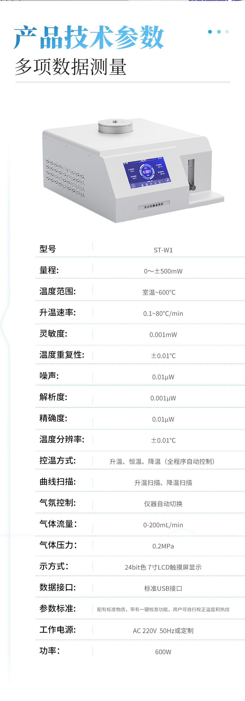測量與熱量有關的物理、化學變化,如玻璃化轉變溫度、熔點、熔融溫度、結晶與結晶熱、相轉變反應熱,產品的熱穩定性、固化/交聯、氧化誘導期等。