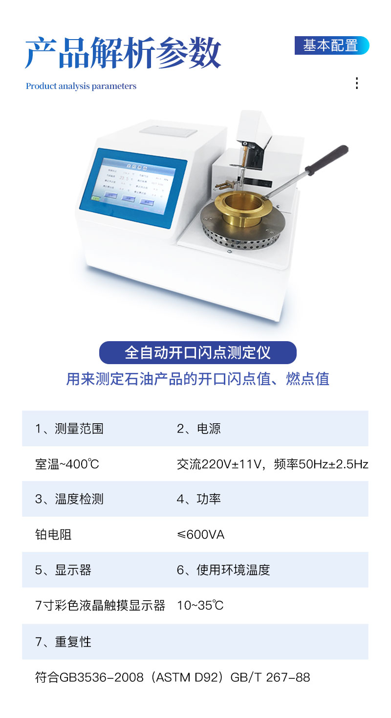 267-88的情況下,連續測試同一樣品,兩者閃點值相差≤4℃。4、自動化程度高。可以自動完成測試過程,自動進行冷卻,自動信息提示等。開口閃點測定儀功能與性能和國內外**水平接軌,是石油、電力、化工、商檢等行業替代進口產品的**儀器。